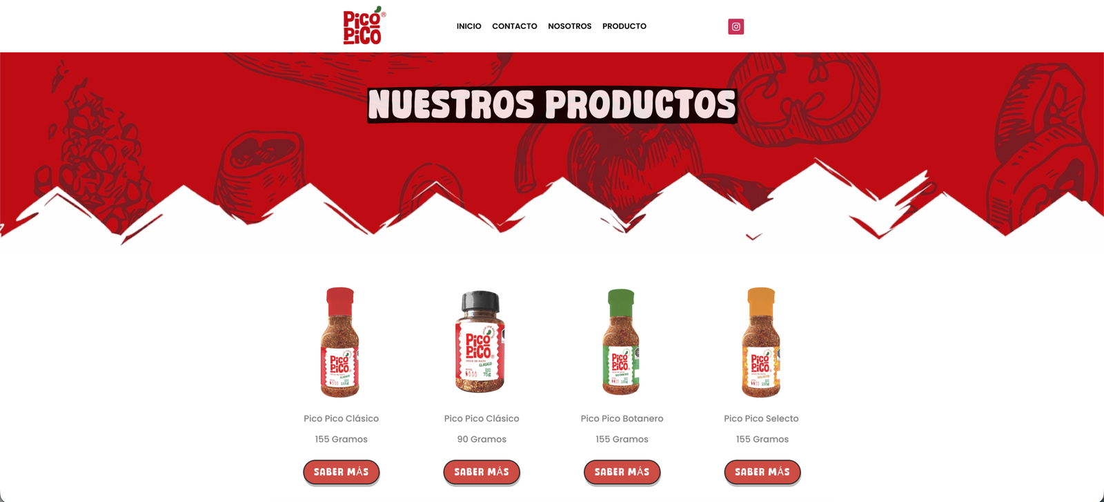 En este diseño fue creado con la idea de presentar los productos de la empresa Pico Pico de una forma funcional y atractiva con las ideas que se ocurrian al cliente.